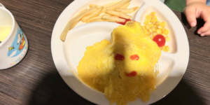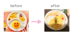 オムライスに、にっこり顔が書かれています。